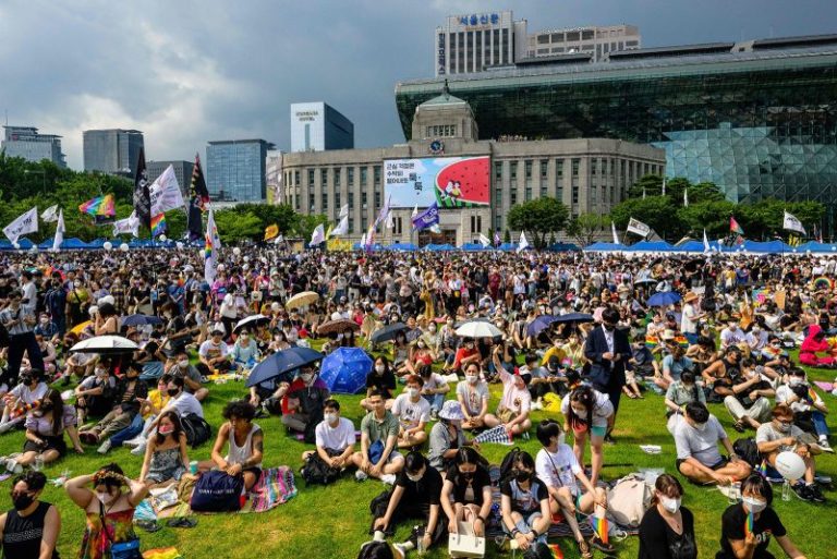 For years, South Korea’s biggest annual LGBTQ pride celebration has been held in the same grassy square in central Seoul, which fills up with performers and joyful participants decked out in rainbow costumes.